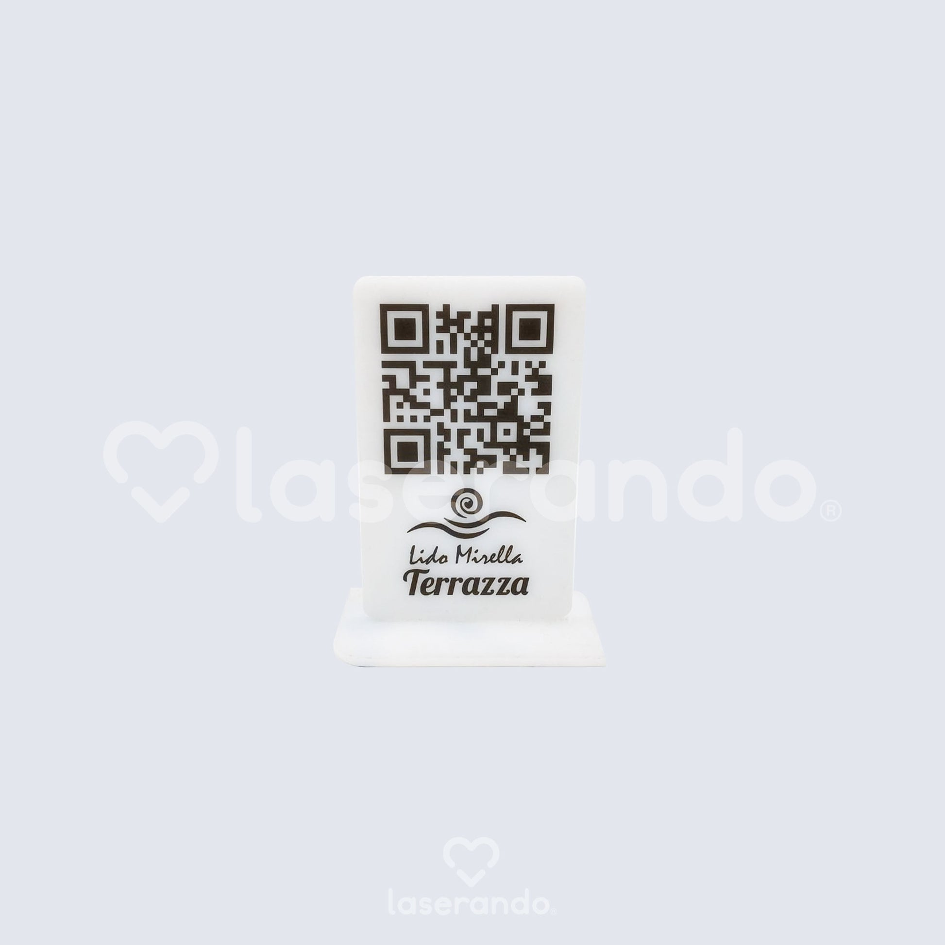 - QR Code Personalizzato: Il QR code, stampato sia sul fronte che sul retro, insieme al logo aziendale con tecnica di stampa UV, garantisce una qualità elevata e durabilità, permettendo ai clienti di accedere facilmente al menù digitale con il proprio smartphone.